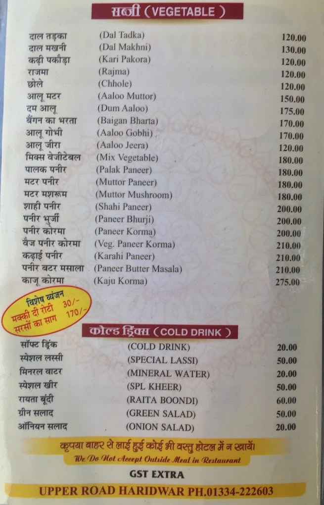 Authentic North Indian food. A must visit restaurant in Devpura, Haridwar.