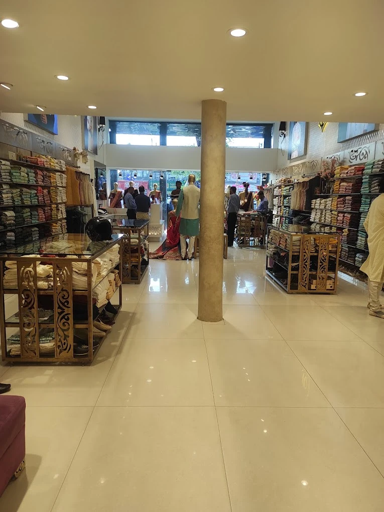 Within the store's opulent ambiance, you'll discover a symphony of intricate designs and luxurious fabrics. Bask in the warmth of Mr. M.S. Chauhan's impeccable service as he unveils a myriad of options, catering to your every whim. Whether it's a grand wedding ensemble or a sophisticated business suit, Manyavar's vast inventory offers a treasure trove of possibilities. Immerse yourself in the artistry of traditional Indian wear, adorned with exquisite embroidery and shimmering embellishments.